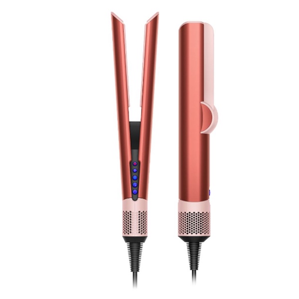 Dyson Airstrait™ straightener (Strawberry Bronze/Blush Pink) - Fast wet to dry straightening. With air only. No heat damage.2- Powerful, directional airflow smooths and straightens hair for an everyday straight style, in 25% less time.1- Use root drying mode to gently pre-dry roots to ensure scalp is not left damp and to create added volume.- Two styling modes to style hair from both wet and dry. Convenience without compromise Machine highlights Intuitive airflow Your machine senses when hair is between the arms and automatically drops to low airflow when it's not - for quieter, more efficient styling. LCD screen High-definition colour display shows airflow and temperature settings, for easy reference when styling. Lock feature Slide the button to lock and unlock the arms of your machine. Use with the arms locked to gently pre-dry hair and create volume from the roots. Auto-pause After three seconds of inactivity your machine will automatically pause. Simply move the machine to restart the airflow.