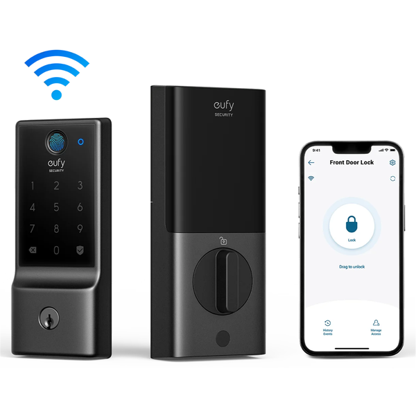 Smart Lock C220 - 8 Months Battery Life: With 8 AA batteries, Smart Lock C220 runs around 8 months. Experience ultimate convenience and peace of mind with our long-lasting power solution. *May vary depending on the frequency of the lock being used. - Self-learning AI: Fingerprint door lock recognition gets more precise with every touch, so you don't have to try agian and again to get in. Never be awkward or upset at unlocking the door. - 6 Ways to Unlock: Unlock with a touch for less than 1s with fingerprint lock. You can also open your front door lock via the eufy Security app, using the keypad or physical key, from Apple Watch, or use your voice with Alexa/Google Voice Assistant. - Control from Anywhere with Built-in Wi-Fi: No bridge required, you can control your wifi smart lock from anywhere via the eufy Security app. Easy setup. (Access management, Real-time notification, Event History)?Integrated eufy ecosystem?If you have a eufy doorbell, you can add your wifi door lock to your routines and control devices together for keyless entry within the eufy Security app. - Easy Installation and Excellent Customer Service: Compatible with most standard US&;CA deadbolts. 15-minute easy install without drilling. - Security and Durability: BHMA Grade 3 Certified after being locked and unlocked more than 100,000 times. Send an alarm triggered by an unusual attempt to open your smart deadbolt lock. Operating temperatures range from -22? to 158? (-30? to 70?). IP53 Waterproof. Your Finger is the Key Recognizes your fingerprint in less than 0.3s, cutting out the time waiting at the door. No Battery Fear 8 Month* - You won't have to worry about battery replacements or being locked out unexpectedly. Easy Setup Without Bridge Avoid separate bridges, eays installation. With Wi-Fi built-in, you can control the lock remotely. Protection That Lasts Decades Tested by BHMA. Expected to work up to 10 times a day for over 30 years. Decide Who Has Access You can manage, create, or delete user profiles-even for guests. Stay in the know Enjoy peace of mind with every door activity visible in the event history. Anti-Peep Passcode Protection Add random digits to your pincode to hide it from prying eyes.