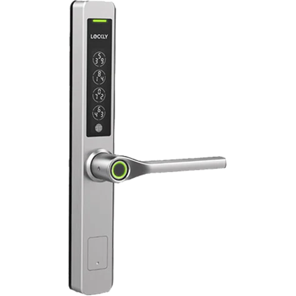 SLIDE EDITION Access for thin framed sliding doors Provides main entrance lever access and security for thin framed metal, aluminum or wooden sliding doors. - Hack-proof PIN Genie® digital touchscreen- 3D biometric fingerprint sensor access - Stores up to 99 fingerprints- IPX4 rated for water protection- Issue Offline Access Codes™ that do not require users to download an app or have WiFi or Internet connection to use- Fast Pass MIFARE RFID access- eKeys - Grant one-time use or specific time duration access by issuing codes, digital eKeys via a mobile device- Grant access even when you're not home - Remotely lock and unlock your door from anywhere using the Lockly app- Full control with smartphone and Lockly\OS ™