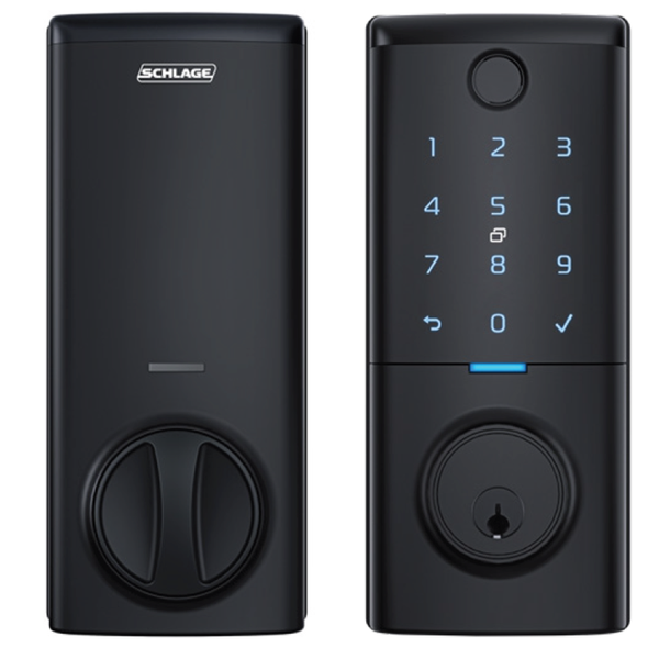 Schlage Ascent Smart Deadbolt Lock - Black Seamlessly integrating smart technology with a sleek design, the Schlage Ascent range of smart locks offers keyless entry, via fingerprint, keypad, key tag or app, ensuring that your home is both stylish and secure. Enjoy the convenience and peace of mind knowing that your home is protected by a trusted name in security, while also benefiting from the simplicity that smart technology brings to your daily life. Make Life Easy - Simple access including fingerprint, keypad, key tags, app or back-up key- Easy to set up and program using the Schlage Breeze app, program- access codes for temporary or recurring visitors- Send virtual keys to guests, via text message from the Schlage Breeze app- Use voice commands via Amazon Alexa or Google Assistant- Firmware updates through the app ensure future compatibility- Convenience of passage or auto locking modes in the app for easy access Feel Secure with Schlage - Rigorous environmental and durability testing to ensure long-lasting performance and resilience- Built-in alarm technology triggers an alert if several incorrect- codes are attempted- Audit trail allows you to see who has used the lock and when- Random PIN number function protects your entry code- Low battery notification offers weeks of advanced warning for battery replacement- Emergency access using a USB-C cable and charged power bank