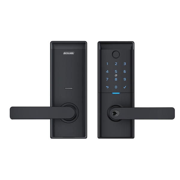 Schlage Ascent Smart Enterance Lever Lock - Black Seamlessly integrating smart technology with a sleek design, the Schlage Ascent range of smart locks offers keyless entry, via fingerprint, keypad, key tag or app, ensuring that your home is both stylish and secure. Enjoy the convenience and peace of mind knowing that your home is protected by a trusted name in security, while also benefiting from the simplicity that smart technology brings to your daily life. Make Life Easy - Simple access including fingerprint, keypad, key tags, app or back-up key- Easy to set up and program using the Schlage Breeze app, program- access codes for temporary or recurring visitors- Send virtual keys to guests, via text message from the Schlage Breeze app- Use voice commands via Amazon Alexa or Google Assistant- Firmware updates through the app ensure future compatibility- Convenience of passage or auto locking modes in the app for easy access Feel Secure with Schlage - Rigorous environmental and durability testing to ensure long-lasting performance and resilience- Built-in alarm technology triggers an alert if several incorrect- codes are attempted- Audit trail allows you to see who has used the lock and when- Random PIN number function protects your entry code- Low battery notification offers weeks of advanced warning for battery replacement- Emergency access using a USB-C cable and charged power bank