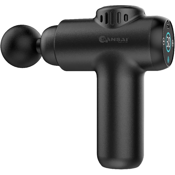 Sansai MSG-3003K Handheld Massager - Black The Sansai MSG-3003K Muscle Massage Gun in sleek black is designed to deliver powerful and versatile muscle relief with its 20W brush motor and 3000mAh rechargeable battery, ensuring extended usage with a quick 2.5-hour charge time. Featuring 4 professional-grade massage heads, this device offers targeted treatment for various muscle groups and maximizes comfort with 30 adjustable speed levels, ranging from 1200 to 3200 rpm, allowing for customizable intensity. The user-friendly LCD touch screen makes adjustments simple, while the portable storage bag ensures convenient transport and storage. This massage gun package includes 4 massage heads-Round, Taper, Flat, and U-Shape-for tailored relief, plus an AC charger and user manual for easy setup and operation. - 4 professional massage heads- 30-speed levels- LCD touch screen- 20W powerful brush motor- 3000mAh rechargeable battery- Charging time 2.5 hours(app.)- Amplitude 6mm- With a portable storage bag