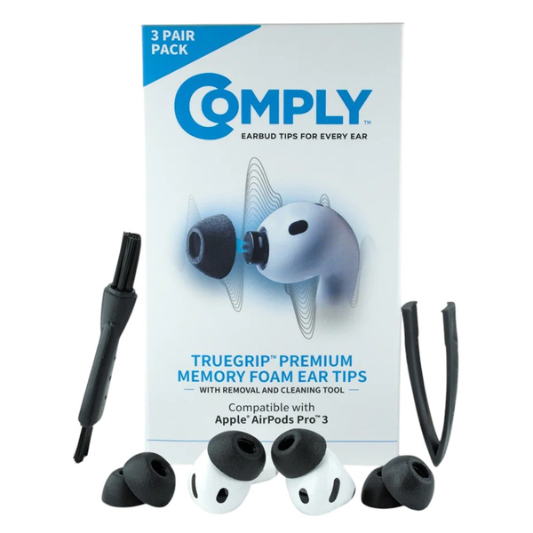 - Secure Fit: Foam expands to stay in your ears and won't fall out- Superior Comfort: Soft Memory Foam adapts to your ear shape for all-day pain-free listening- Enhanced Noise Isolation: Creates a secure in-ear seal to block out more external noise - Rich Sound Clarity: Delivers balanced highs, mids, and bass for immersive listening- Premium Option: TrueGrip provides the original comfort and secure fit.- Complete Pack: Includes 3 pairs of tips, a cleaning brush (or wipe with MAX), and a removal tool for easy maintenance *These tips are NOT COMPATIBLE with AirPods Pro Gen 1 &; 2. TrueGrip Technology