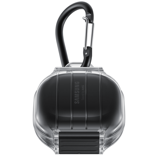 Cover up and carry on The durable polycarbonate material fits snugly against your Galaxy Buds charging case for a layer of protection from top to bottom and front to back. Attach the detachable carabiner to your backpack strap or belt loop for easy access when you want to tune in to your playlist.