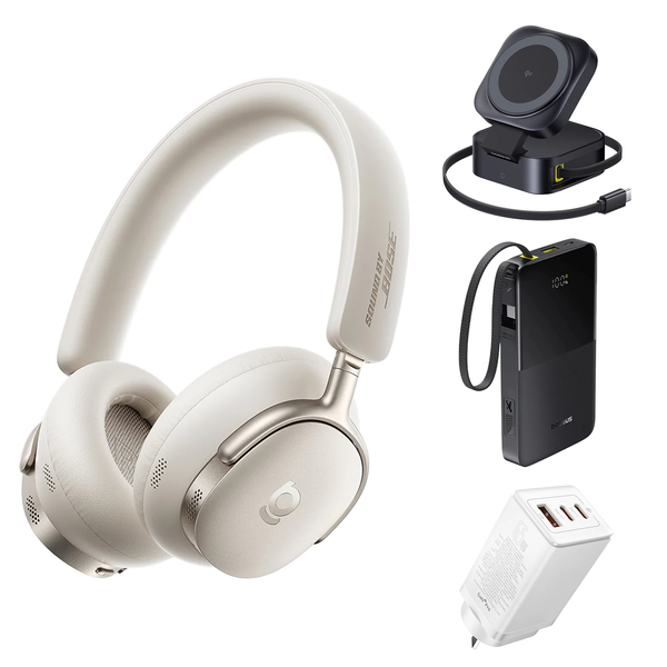 Baseus Inspire XH1 Wireless Over-Ear Noise Cancelling Headphones - Starlight Off-White - Power Bundle - Includes Baseus PicoGo 2-in-1 Qi2 Wireless Charger, Baseus 65W GaN Wall Chargerr & Baseus EnerFill Bipow2 Pro 10000mAh Power Bank - Worth $341