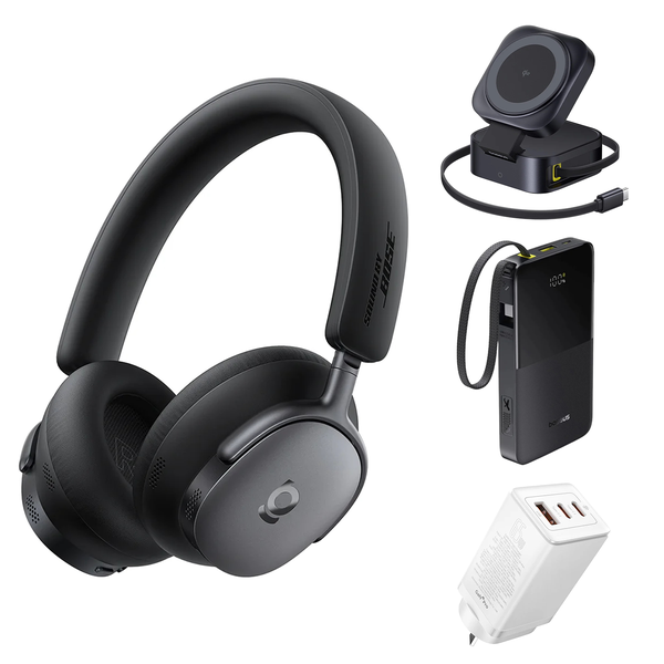 Baseus Inspire XH1 Wireless Over-Ear Noise Cancelling Headphones - Cosmic Black - Power Bundle - Includes Baseus PicoGo 2-in-1 Qi2 Wireless Charger, Baseus 65W GaN Wall Chargerr & Baseus EnerFill Bipow2 Pro 10000mAh Power Bank - Worth $341