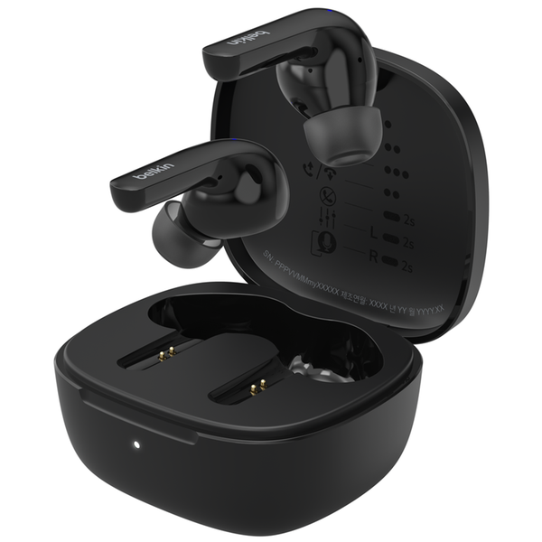 Make the most of your commute, workouts and free time with true wireless earbuds featuring seamless Bluetooth® pairing and controls. The 12 mm drivers and 3 EQ presets deliver our Belkin Signature Sound for a high-fidelity, personal audio experience. - Every SoundForm product undergoes 150 meticulous quality tests, ensuring perfection before it reaches your ears- Extended battery life gets up to?9?hours of non-stop playtime?with an additional 24 hours with wireless charging case???? - Charge fast: 10 min. charging gets 1 hour of playtime?? - Seamless Bluetooth 5.3 pairing with 30 ft./10m range?? - Two microphones in each bud for clear calls? - Environmental Noise Cancellation? - Mono mode to save battery life and stay aware of surroundings? - 12mm drivers deliver high-fidelity audio? - 3 EQ presets to personalize listening?? - All-day comfort and a solid seal for noise isolation? - Intuitive touch controls?? - Touch control guide conveniently located in charging case? - IPX5-rated sweat and splash resistance? - Qi certified? Great sound at home or on the road. SoundForm Motion brings amazingly full-range audio and all-day comfort in its sealed in-ear fit. You'll enjoy up to?9 hours of non-stop playtime from the earbuds, plus another?24 hours of playtime in the charging case. An IPX5 rating means they're sweat and splash resistant. Environmental Noise Cancellation and Clear Call Quality technology with two microphones in each bud allow for in-person sound on calls, whether you're in a crowded café, subway or airport. Power up without plugging in. Wireless charging case offers wire-free charging on any Qi-capable charging pad. The guide to the touch controls is conveniently located inside the lid. Grab and go with fast pairing. Enjoy true wire-free audio with seamless, reliable Bluetooth 5.2 pairing and solid connection up to 30 feet away. Hear and be heard. Get quality sound from two microphones in each earbud that transforms every call into an in-person conversation. Great sound for your commute. Our Environmental Noise Cancellation technology filters outside noise as you walk, take a train or bus. Convenient Mono Mode allows for single-earbud use to save battery life and stay aware of your surroundings.