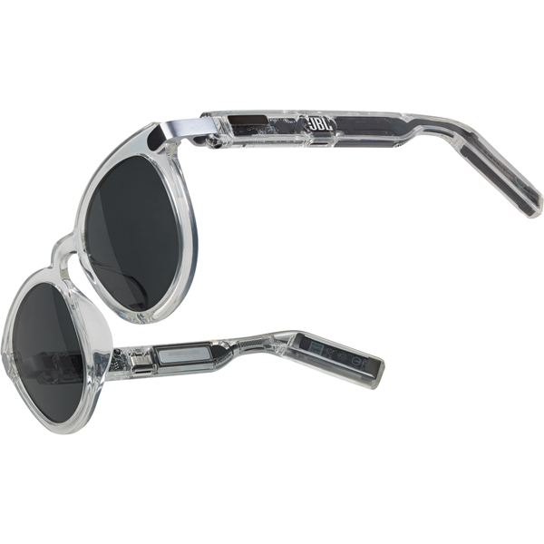 Style meets sound JBL Soundgear Frames are the perfect fusion of sound and fashion. Made with the latest thermoplastic materials, the slim, flexible, lightweight frames are comfortable enough to wear all day, and come in three unique translucent colors and two stylish designs. (And yes, you can get prescription lenses installed in them by your optician.) Open the temples to turn the speakers on and close them to turn them off. When you're wearing them, just tap the JBL logo on either temple to adjust the volume, answer a call, or skip a song. JBL's unique ultra-thin 25mm*9mm high amplitude speakers powered by JBL OpenSound technology-are mounted inside the slim temples to enhance aesthetics and comfort. They deliver an immersive and engaging audio experience while still letting you hear the sounds around you. Connect the Soundgear Frames to the JBL Headphones app and customize the sound to your own preferences, or choose from 6 preset EQ curves. The JBL Soundgear Frames are where style meets sound. - JBL OpenSound Technology- Hands-free, crystal clear calls- 8 hours of play time, plus more- Rugged and water resistant- Style and comfort- Wear and play- Convenient USB Type-C charging- Instant and precise control- JBL Headphones app JBL OpenSound Technology Each temple cleverly conceals JBL's unique ultra-thin 25mm*9mm high amplitude rectangular speaker with a three-layer diaphragm, featuring a special algorithm for bass enhancement and frequency division processing. The JBL Soundgear Frames deliver an immersive, engaging and nocompromise sound experience while leaving your ears completely open, so you can still hear everything that's happening around you.