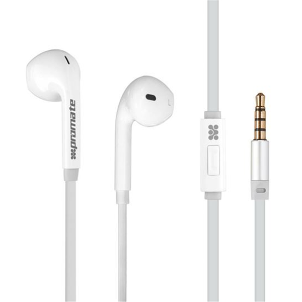 PROMATE Lightweight High Performance Stereo Earbuds with In-Line Mic and Universal Volume Control. Colour White
