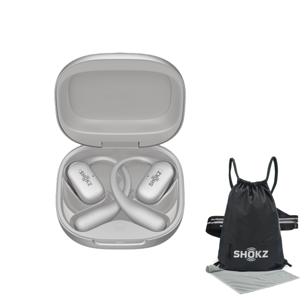 Shokz OpenFit 2+ Flagship Open-Ear True Wireless Sports Headphones - Grey - Bonus Shokz Sports Pack - Drawstring Bag + Sports Belt + Microfibre Towel