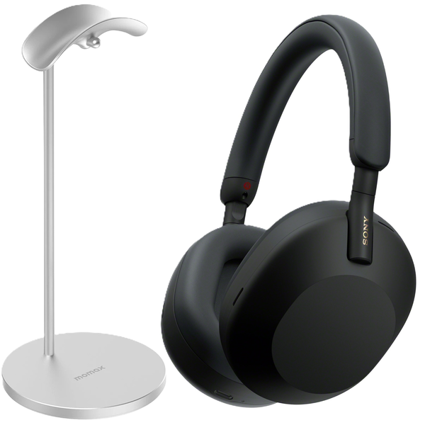 Sony WH-1000XM5 Wireless Over-Ear Noise Cancelling Headphones - Black - BONUS Momax Premium Aluminium Headphone Stand