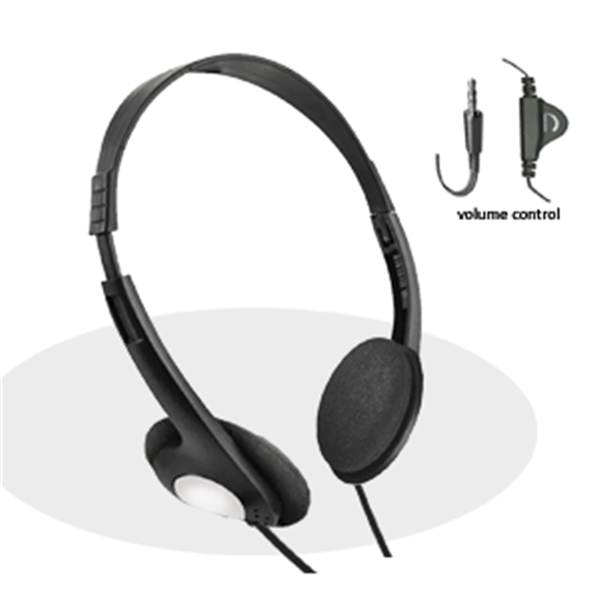 PR48V Stereo Headphone - Height adjustable headband- 3.5mm miniature jack Lightweight design Basic stereo headphones weigh just 0.22 pounds Ear Cushion Comfort-fit with a wide headband and foam-cushioned ear cups for added listening comfort In-line volume control Convenient volume controller on cable Compatibility Compatible with all sound cards and portable music devices