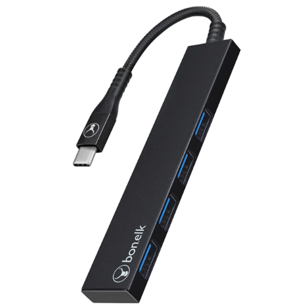 The Bonelk USB-A hub is a great solution to connect up to 4 additional USB-A high speed devices to your laptop, smart device or desktop computer. Built using high quality materials and intelligent electronics. Features 1 x USB-A male port to 4 x USB-A 3.0 female ports that support 5 Gbps transfer speeds, encased in a premium grade aluminium housing. Complete with a durable Long-life cable with braided nylon jacket and FLEX-SR™ strain relief. 4 x HIGH SPEED USB-A Connect up to 4 additional USB-A high speed devices to your laptop, smart device or desktop computer. 5Gbps TRANSFER SPEEDS Convert 1x USB-A port into 4x USB-A 3.0 ports, supporting 5Gbps transfer speeds. FLEX-SR™ TECHNOLOGY Premium strain relief made from flexible materials designed to withstand bends. INTELLIGENT ELECTRONIC Built with intelligent electronics encased in a premium grade aluminium housing. DURABLE &; LONG-LASTING Durable and long-lasting double braided nylon cable jacket. SLIMLINE DESIGN Stylish slimline design allows easy transportation.