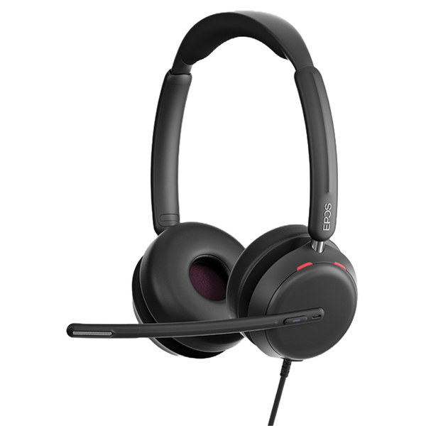 Double-sided headset for desk workers in the New Open Office. Increase efficiency by 40%* by improving reaction time whilst multi-tasking to maintain accuracy with EPOS BrainAdapt™, industry-leading voice pickup by EPOS AI™ and adaptive ANC. *EPOS BrainAdapt™ Dual Task Study - Industry-leading voice pickup for focused conversations- Increase your daily efficiency by 40 %- A new market standard for open office headsets- Stay comfortable throughout the day- Experience true ease of use A new market standard for open office headsets Enjoy a superior open office headset with super wideband and stereo sound. Meets Microsoft Teams Open Office requirements. Stay comfortable throughout the day A lightweight design, soft breathable cushions, and headband padding allow for all-day wearing comfort. Industry-leading voice pickup for focused conversations Microphone technology powered by EPOS AI™ makes sure you get your message through no matter the level of background noise. Protect Your Brain in the Open Office Hybrid adaptive ANC effectively shuts down noise and helps your brain focus - even in busy open office environments. Hybrid adaptive ANC Hybrid adaptive ANC means that the built-in Active Noise Cancellation will adapt to the surrounding noise level and only use as much ANC as needed at any given time. This reduces the feeling of occlusion in situations where a high level of ANC is not required. Via the desktop or mobile versions of EPOS Connect the user can manually adjust the ANC.