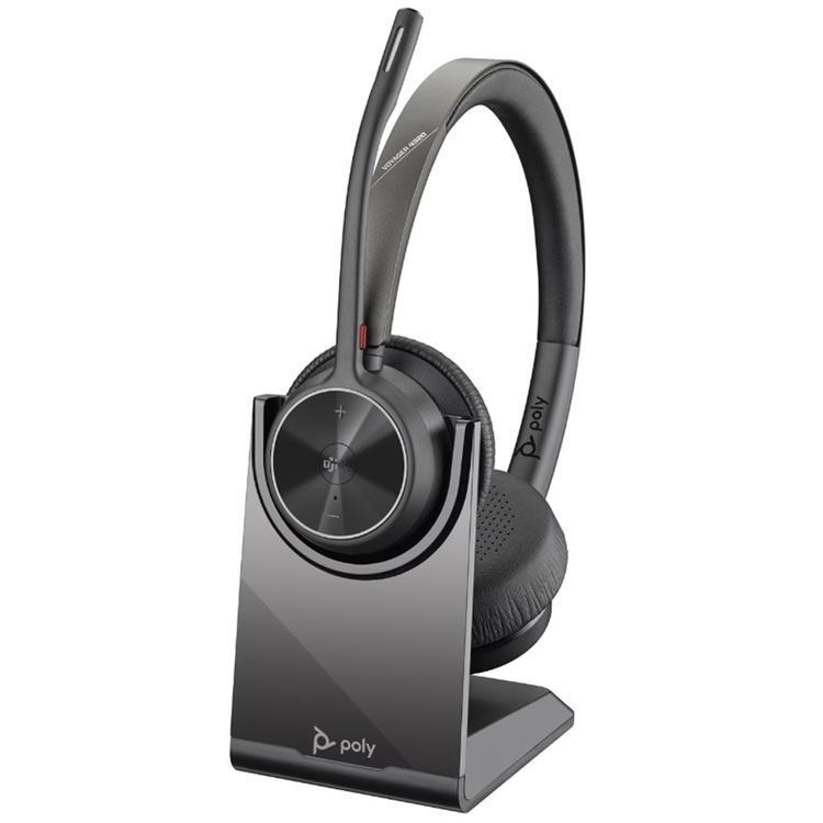 Free your workers from their desks with the entry-level Bluetooth® wireless headset. Meet the Voyager 4300 UC Series. It's everything your teams need to stay productive and connect to all their devices whether at home or in the office. Freedom to work Move freely between all your workspaces with this portable headset. Roam with ease with up to 50 m / 164 ft of wireless range. Reduce background noise and control your conversations with Acoustic Fence technology. Round-the-clock efficiency Boost your productivity with continuous comfort, up to 24 hours of talk time, and connectivity to multiple devices. Extend your talk time by using the desktop charge stand or by using the headset in the corded USB mode. Escape your desk Walk-and-talk with ease with up to 50 meters / 164 feet of Bluetooth® wireless range with included BT700 USB adapter. It's your call Stay productive with up to a full 24 hours of wireless talk time. On-call indicator Give those around you a visual cue that you're busy - an on-call indicator flashes on the ear cup when you're on a call. No need for battery anxiety Keep your headset fully charged using a desktop charging stand. You can also extend the battery life by using it corded, with audio over USB mode. Easy management via Poly Lens Take control of your deployment from anywhere via remote management with Poly Lens cloud-based device management software. Communications platforms An IT manager's dream, this headset was created for communication and is optimized and certified to work with top virtual meeting providers.
