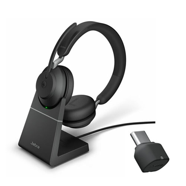 Jabra Evolve2 65 Bluetooth On-Ear Headset with Charging Stand - Teams Certified