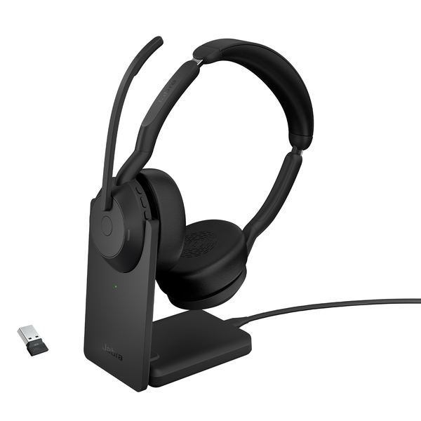 Jabra Evolve2 55 Bluetooth On-Ear Active Noise Cancelling Headset with Stand - UC Certified
