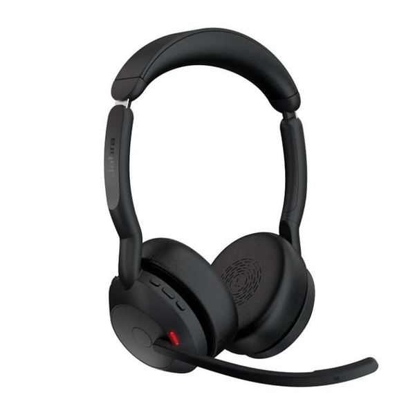 Jabra Evolve2 55 Headset - UC, Stereo, USB-A, No Stand (25599-989-999) Why you'll love Jabra Evolve2 55 Revolutionary comfort with Jabra Air Comfort technology Silence your surroundings with Active Noise-Cancellation (ANC) Work-anywhere professionalism, with noise-cancelling microphone technology Optimised sound for professional and personal use Dual connectivity for seamless witching between devices Certified for leading virtual meeting platforms BEST-IN-CLASS COMFORT* - There's something in the air… Our engineers spent years perfecting our new game-changing Jabra Air Comfort technology to create this incredible best-in-class comfort*.Layers of ultra-soft perforated foam inside the cushioned headband** stop pressure building up, for a dreamy, light-as-air fit no matter how long you wear it.Flexible, ergonomic earcups take the feel-good factor even further. They rotate to move whenever you do, so you're free to focus on your day without your headset getting in the way.*Class is defined as competitors in the same price range. Claim applies to stereo variant. Refer to jabra.com/commercial-claims.**Stereo variant only. Mono variant has a lightweight non-padded headband. ACTIVE NOISE CANCELLATION - It's oh-so-quiet We've all had one of those days. A buzzer-happy delivery driver arriving mid-conference call. The kids screeching about snacks just as you're about to seal the deal. Your dog barking in the background of that crucial client chat.Enter Evolve2 55.Its powerful Active Noise Cancellation (ANC) has a novelty acoustic chamber design and a specially-designed chipset, plus 2 premium noise-cancelling microphones, to effectively silence your surroundings. So you can get on with making hybrid work, work for you.Hear what you want, the way you want. Evolve2 55 delivers Active Noise Cancellation in both mono and stereo styles - so you can be sure all the words in your ear sound just right, whichever style you prefer. MICROPHONE TECHNOLOGY - We hear you Bright ideas. Words of wisdom. Crucial comments. Whatever you've got to say, Evolve2 55 makes sure you sound professional when you say it. A clever chipset powers its speech-separating, noise-cancelling algorithm, and 2 premium microphones, to effectively filter out background distractions. So whoever you're talking to hears you - and only you - as clearly as if you're sitting next to them. MULTI-PURPOSE - All work and all play Evolve2 55 does it all, a bit like you. Stay work-ready with efficiency-boosting tech and a busylight to protect your focus. Taking a moment to recharge between meetings? Immerse yourself in optimized music and media with rich full sound from 28mm custom speakers. Looking for the next flight to Copenhagen (or just the quickest route home)? Tap to hear all the answers from your chosen voice assistant.Even the battery works as hard as you do - we've made it last longer, so you can listen to whatever music keeps you going without constantly having to stop and charge*. With Evolve2 55 you're ready for anything.*up to 10 hours talk time with ANC on and busylight on, and up to 18 hours listening time with ANC off and busylight off FLEXIBLE &; FAST SETUP - Ready, headset, go. We know your time is valuable, so we've made Evolve2 55 easy and lightning-fast to use. We're talking instant out-of-the-box plug &; play, walk-and-talk-on-the-way simple.Sitting down at your desk? Just plug and play with the pre-paired USB adapter for your laptop. Out and about? Bluetooth® connects to your phone instantly. A wireless range of up to 30m/100ft gives you even more flexibility - ideal for brewing your thoughts and your coffee during a call. UC-CERTIFIED - As flexible as you are Evolve2 55 is available in a Microsoft Teams-certified variant and a UC variant, which is certified for Google Meet and Zoom to ensure a seamless collaboration experience.It's also optimised for other leading UC platforms, so you can be confident that however you keep in touch with your team, this trusted device will keep the collaboration going all day.