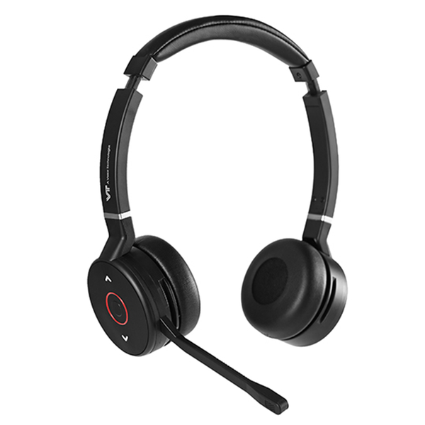 The VT 9800 Bluetooth binaural headset is portable and professional, designed to support your hybrid working. The headset has a wireless range of 30 metres, so you aren't tethered to your desk and can move around your workspace. Additionally, its built-in ENC technology can eliminate background noise and deliver high quality audio, so moving between rooms won't disrupt your call. Whether you work in a noisy office or outdoors, the VT 9800 is a flexible headset designed to make your calling experience crystal clear and professional. - Call control buttons allow you to easily answer and end calls, volume adjustment, mute microphone- Dual Bluetooth connectivity to 2 devices at the same time for calls and music- Wireless range of up to 30 metres- Compatible with Skype for Business and Microsoft Teams with the BT50U dongle- Built-in ENC technology and advanced passive noise cancellation Intelligent Call Control Anywhere, Anytime This portable bluetooth headset with intuitive call control buttons that allows you to easily answer and end calls, volume adjustment, mute microphone, whether you're working from home, in noisy office or outdoors. Led integrated Busy-light The red light on the speaker cover is automatically activated, which acts as a"do not disturb"signal and protects you from all interruptions when you're on a call. All-day Battery The VT9800 gets up to 15 hours of talk time, and you can easily connect the USB-C cable to charge while using it. ENC &; PNC The built-in ENC technology of Bluetooth headset can eliminate the background noise and deliver high-definition audio; Advanced passive noise cancellation can also reduce part of the noise, allowing you to hear the customer more clearly. Superior Wireless Peformance Dual Bluetooth connectivity to two devices at the same time for calls and music with a range of up to 30m/100ft, you can work away from your desk and still maintain the quality sound. Wide Compatibility The headset can be compatible with the mobile phones, laptops and desktops. You can answer and end calls of mobile phone through multifunction button; Plug the BT50U (Not Included)