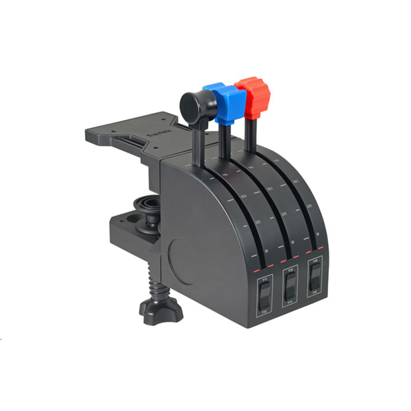 The Multi-Engine Aircraft's Ally If you like to fly multi-engine aircraft, most flight sim controllers leave you a couple throttles short. The Pro Flight Throttle Quadrant is the solution, providing three extra levers to control even more engines, flaps, gear, spoilers or any other programmable axes you want to assign. In addition, three momentary, two-way toggle switches on the Quadrant's base help create a total of nine programmable commands. A perfect complement to the Throttle Quadrant included in the Saitek Pro Flight Yoke, you can easily add modular controls to your simulator cockpit. Fly with Saitek, the market leader in high-performance flight simulation hardware. Ideal for Side-by-Side Configuration Interchangeable lever heads help you create a custom configuration of throttle, flaps, mixture, and prop pitch. Remove the lever tops and then group the controls just how you want them.Rugged Mounting Hardware Saitek's Pro Flight Throttle Quadrant is equipped with an adaptable mounting clamp which provides the freedom to configure your kit in any manner you see fit. Whether on top of your desk or clamped to the front, you can securely place the controls exactly where you want them.Fully Customizable to Meet Your Needs Saitek's Pro Flight Yoke is the foundation of an authentic flight sim experience and built to harmonize with many other Saitek flight simulation products. Saitek's range of Instrument Panels are modular and interchangeable by design, and can be situated one on top of another or side-by-side. Want the Altimeter above the Compass? Done. Want your Vertical Speed Indicator to the left of your Airborne Direction Finder? Go for it. It's your choice. Easy-to-use mounting brackets provide the means to arrange your flight simulation setup in a configuration only limited by your imagination.