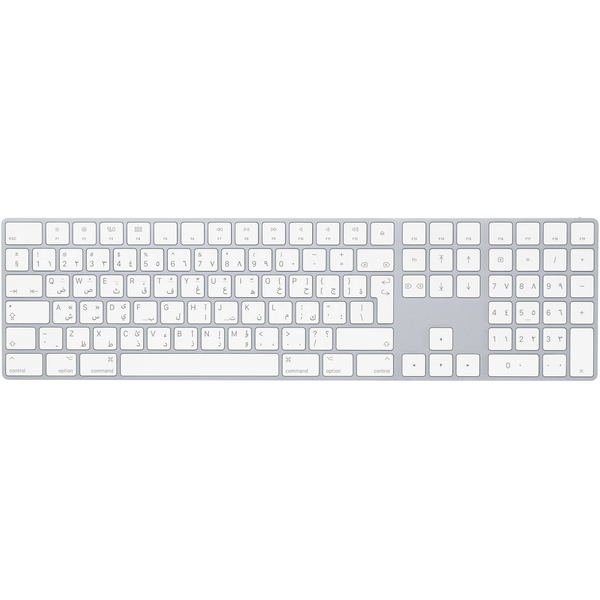 Magic Keyboard with Numeric Keypad features an extended layout, with document navigation controls for quick scrolling and full-sized arrow keys for gaming. A scissor mechanism beneath each key allows for increased stability, while optimised key travel and a low profile provide a comfortable and precise typing experience. The numeric keypad is also great for spreadsheets and finance applications. And the built-in rechargeable battery is incredibly long-lasting, powering your keyboard for about a month or more between charges.