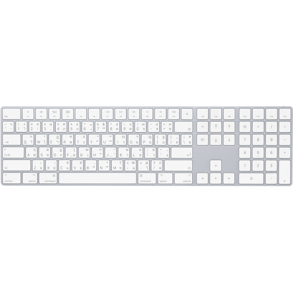 Magic Keyboard with Numeric Keypad features an extended layout, with document navigation controls for quick scrolling and full-sized arrow keys for gaming. A scissor mechanism beneath each key allows for increased stability, while optimised key travel and a low profile provide a comfortable and precise typing experience. The numeric keypad is also great for spreadsheets and finance applications. And the built-in rechargeable battery is incredibly long-lasting, powering your keyboard for about a month or more between charges.