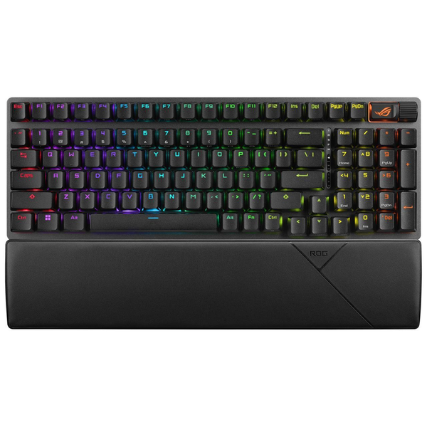 Maxed-Out Gaming Versatility ROG Strix Scope II 96 Wireless is a full-function gaming keyboard packed into a 96% efficient layout to free up your desk space. Get ready for a premium experience with maximum versatility and unlimited options for customization. It features a tri-mode connection with ROG SpeedNova wireless technology and ROG Omni Receiver. It comes with hot-swappable pre-lubed ROG NX Snow mechanical switches and a unique silicone dampening foam design with integrated switch dampening pads for a great typing experience. It also features hotkeys for Xbox Game Bar and recording functions, and intuitive multi-function button with multiwheel. It also offers three tilt angle adjustments and a detachable wrist rest.