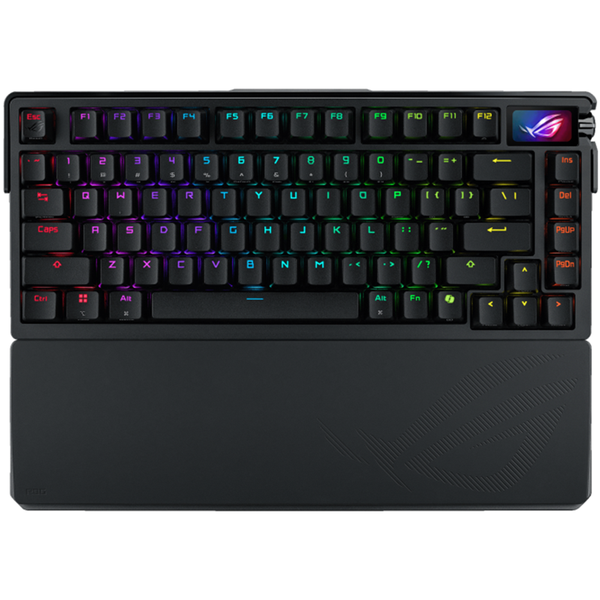 The ROG Azoth Extreme is a customizable 75% gaming keyboard with a premium aluminum-alloy chassis and metal frame. It features an 8000 Hz report rate with the ROG Polling Rate Booster and over 1600 hours of battery life in ROG SpeedNova 2.4 GHz wireless mode. The upgraded OLED touchscreen and three-way knob enable system monitoring and quick adjustments. The carbon-fiber positioning plate ensures a crisp typing sound, while three dampening layers absorb vibrations. An adjustable gasket mount with a paddle switch offers two typing preferences. Superior Build Quality The ROG Azoth Extreme boasts premium aesthetics with its full aluminum-alloy chassis and metal frame, featuring a distinctive bladed pattern. The bottom chassis is achieved through 12 steps of intricate manufacturing processes, including sandblasting, anodizing, CNC machining, and more. Carbon-Fiber Positioning Plate The Azoth Extreme employs a carbon fiber-positioning plate that replicates the rigidity of metal positioning plates, providing a crisp typing sensation. At the same time, carbon fibers elasticity provides excellent shock absortion to effectively minimize vibrations during typing. Three-Layer Dampening Design The Azoth Extreme utilizes three dampening layers, with two PORON layers and a silicone pad to absorb vibrations and minimize switch pinging and echoes to offer sublime typing acoustics. Adjustable Gasket Mount Design An innovative adjustable gasket mount allows users to adjust the typing feel of the Azoth Extreme via a quick-flip paddle switch.In Hard typing mode, the keystroke feel is firm, providing quick rebound that's ideal for gaming. On the other hand, Soft mode offers a flexible keypress for comfort during extended typing sessions. Detachable Magnetic Feet The Azoth Extreme comes with two pairs of magnetic feet with different heights giving it three tilt angles to suit user preference. Extended Silicone Wrist Rest Made of silicone and featuring an aluminum-alloy base, the extended wrist rest is tailored to perfectly complement the keyboard . its ergonomic design ensures comfortable typing experiences while providing firm support over time. Versatile Tri-Mode Connection ROG SpeedNova wireless technology offers up to 1,600+ hours of stable, uninterrupted near-zero-latency gameplay in 2.4 GHz RF mode (RGB and OLED off). Alternatively, you can use Bluetooth mode to connect to up to three devices at the same time, or charge and play simultaneously in wired USB mode. ROG NX Mechanical Switch ROG NX mechanical switches utilize composite POM material for the stem with PC top housing and POM bottom housing to provide ultra smooth keystrokes, and the walled stem design enhances stability and prevents dust instrusion. special tuning is also done, coupled with factory pre-lubing, to give the ROG NX keystroke a very satisfying acoustics. Hot-Swappable Switches Swap and install your preferred switch type for a unique, customized feel. ROG Keyboard Stabilizer The pre-lubed keyboard stabilizer has been specially tuned with gamers in mind; it produces less friction, allowing long keys such as Spacebar, Shift and Enter to deliver keystrokes that stay true to the original switch feel. ROG PBT Doubleshot Keycaps ROG PBT doubleshot keycaps provide a premium feel and offer long-lasting durability. Key design has been optimized with mid-height keycaps and a shorter stem to reduce key wobble, providing a more comfortable user experience. ROG UV-Coated ABS Keycaps ROG UV-coated ABS keycaps utilize a layer of hard UV coating to provide superb abrasion resistance protection against keycap shining. Extra Tuning The spacebar has extra lubing and modifications for enhanced acoustics and feel. Aura Sync With Aura Sync RGB, the entire color spectrum and a range of dynamic lighting effects are at your command. Individually lit keys allow you to create a keyboard that's uniquely yours Armoury Crate Armoury Crate unifies system and lighting controls. Easily create, define and customize scenario profiles, map keys, and record macros. ON-THE-FLY MACRO RECORDINGS Record macros on the fly and map them to fully programmable keys. ONBOARD MEMORY Save up to six profiles, including up to five custom schemes, and use them anytime, anywhere. 100% ANTI-GHOSTING &; N-KEY ROLLOVER Every keystroke is registered accurately, no matter how many keys are pressed. MACOS SUPPORT Easily toggle MacOS mode to remap the keys for use with MacBooks and Macs.