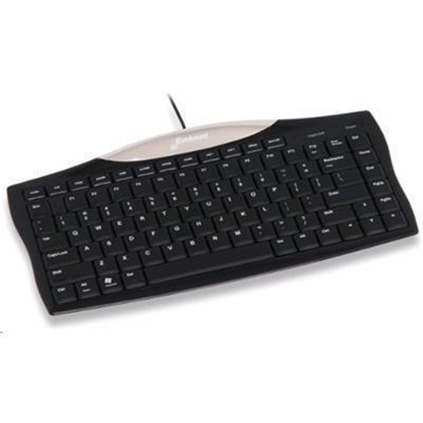 No number pad lets mouse get closer The numeric keys on the right side of a full size keyboard makes the mouse sit too far away and your right arm too extended. Eliminating the right side numeric keys not only saves space, your mouse can get closer so your arm is more relaxed. Tactile bumps facilitate touch typing Tiny bumps on selected keys facilitate touch typing without looking and reduces frequent corrections. Other keyboards have bumps only on the F and J keys. Full size arrow and F1-F12 keys The arrow, F1-F12, PgUp and PgDn keys are full sized, unlike most other compact keyboards which have those keys in smaller than standard sizes. Extremely low profile aids comfort The back edge is not tilted up so the entire keyboard is fully flat to eliminate the need to strain your hands upward. The key tops are only 1 cm or 0.4? off the top of the desk to further reduce wrist strain. Twelve one-touch hotkeys Hotkeys provide one touch operation for Undo, Cut, Copy, Paste, Web, E-mail, Computer, Mute, Volume Down, Volume Up, Sleep, and Turn Off. High quality scissor keys Precision scissor keys provide crisp action and good feedback, unlike some compact keyboards which use wobbly membrane keys that feel mushy. No Fn key necessary All functions are each accessible with one key, unlike other compact keyboards which require also pressing a Fn key simultaneously. Wired plug and play without a driver All the hotkeys work without a driver in Windows XP or newer. The hotkeys do not work with Mac OS but all other keys work and Mac functions are printed on some keys.