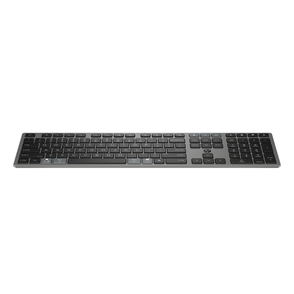 Work confidently with tech that keeps you productive, whenever and wherever. This thoughtfully-designed multi-device wireless keyboard works as hard as you do with ultra-fast charging supercapacitor technology, seamless connectivity, and customization. Ready When You Are Ditch the battery and work worry-free with an ultra-fast rechargeable supercapacitor that provides up to 2 months of usage from a 3-minute charge. You can even recharge the keyboard while working, using the included USB-C cable, and stay typing uninterrupted. Switch Devices Seamlessly Seamlessly and securely connect across multiple operating systems and devices-two via Bluetooth and one via 2.4 GHz HP Unifying Dongle. You can also easily switch connected peripherals from one PC to another with this keyboard's multi-device key. Personalized Productivity Elevate your productivity with programmable keys that reduce unnecessary keystrokes. With a single key, you can also access the power of Microsoft Copilot to work smarter and more efficiently. Built for a Better Tomorrow The HP Multi-Device Rechargeable Wireless Keyboard contains at least 60% post-consumer recycled materials. Plus, by choosing this keyboard, you can help prevent over 150,000 batteries from ending up in landfills worldwide within the next four years.