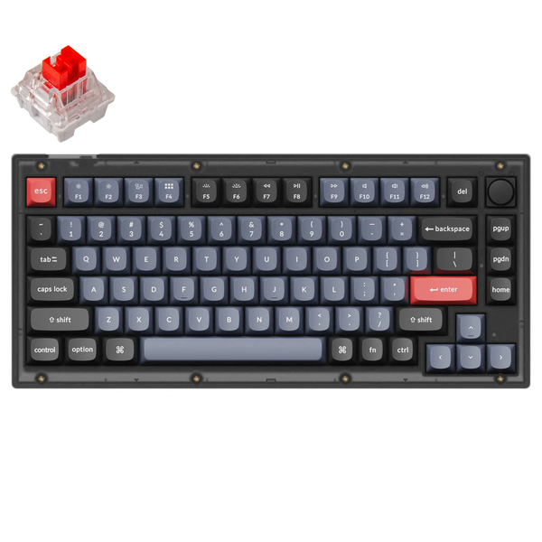 The V1 is a fully customizable mechanical keyboard ready for any situation. It's a great option to introduce you to the custom keyboard world. With its compact 75% layout, QMK/VIA support, acoustic silicone pad, and double-shot PBT keycaps, the V1 is designed for ultra typing comfort and boost productivity.