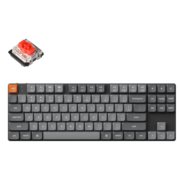 The K1 Max is a low-profile wireless mechanical keyboard with a TKL (80%) layout. It supports 2.4 GHz, Bluetooth, and wired connections. Empowered by QMK/VIA, it offers endless possibilities and enhanced productivity in your work and gaming! 2.4 GHz &; Bluetooth Connection Experience peak gaming performance on the fly with the 2.4 GHz wireless connection boasting a rapid 1000 Hz polling rate. For seamless multitasking across your computer, phone, and tablet, you can effortlessly connect the K1 Max via Bluetooth 5.1 to three devices. Ultra-Slim The innovative low-profile Gateron switch is 31% slimmer than conventional normal profile switches makes the aluminum body K1 Max one of the thinnest wireless mechanical keyboards in the world. While still delivering a distinguished tactile response. Program with QMK &; Launcher. The open-source QMK firmware means endless possibilities for key remapping, macros, shortcuts, and more. Now you can easily customize each key with the Keychron Launcher web app. Suitable For All Devices Offers a Mac layout while remaining compatible with Windows. It stands out in the market by providing the same multimedia and function key functions as Apple keyboards for Mac users, but with enhanced tactile feedback. Additionally, you can configure different keymaps for both Mac and Windows devices. The VIA software is compatible with macOS, Windows, and Linux. The keyboard includes keycaps for both macOS and Windows, along with additional esc and enter keys, facilitating seamless switching between operating systems. An Epic Core Inside A powerful ARM architecture MCU equipped with 256KB Flash will provide more flexibility for developers. The polling rate is 1000 Hz on 2.4GHz and wired modes right out of the box, which makes the latency hardly noticeable even in competitive games. Interior Acoustic Foam Elevate your typing with K1 Max featuring advanced IXPE acoustic foam for silent keystrokes and enhanced comfort, coupled with resilient latex foam for superior key switch support, responsiveness, and durability. Redefining the standard for a quiet, comfortable, and responsive typing experience. Low-Profile Gateron Switch The Gateron low-profile MX 2.0 Mechanical switch is designed to enhance reliability. Gateron's reputable switches are your best choice for a precise, smooth, and reliable fingertip feel whether you prefer linear (red) or bumpy (brown). Low-Profile Double-Shot PBT Keycaps Designed for premium type feeling, the K1 Max comes with our unique double-shot PBT keycaps that made of durable non-backlight shine through PBT material with excellent oil resistance for long-term use. Redesigned Stabilizers We've redesigned the stabilizers to make it stay on the level the same way as the switch while making sure it still delivers reliability and less wobble on the big keys like the space bar, left Shift, backspace, and Enter key. RGB Backlights Comes with more than 22 types of RGB backlight settings (as well as a static white backlight option), and 14 types of backlight settings on the White Backlight version. You can further fine-tune the RGB hue, saturation, brightness, effect speed with ease. Ergonomic Support Three levels of adjustable typing angle aim to provide long-lasting ergonomic wrist support.