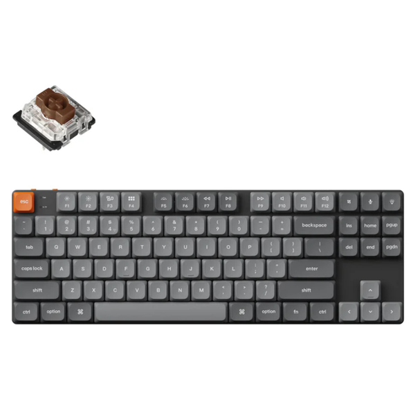 The K1 Max is a low-profile wireless mechanical keyboard with a TKL (80%) layout. It supports 2.4 GHz, Bluetooth, and wired connections. Empowered by QMK/VIA, it offers endless possibilities and enhanced productivity in your work and gaming! 2.4 GHz &; Bluetooth Connection Experience peak gaming performance on the fly with the 2.4 GHz wireless connection boasting a rapid 1000 Hz polling rate. For seamless multitasking across your computer, phone, and tablet, you can effortlessly connect the K1 Max via Bluetooth 5.1 to three devices. Ultra-Slim The innovative low-profile Gateron switch is 31% slimmer than conventional normal profile switches makes the aluminum body K1 Max one of the thinnest wireless mechanical keyboards in the world. While still delivering a distinguished tactile response. Program with QMK &; Launcher. The open-source QMK firmware means endless possibilities for key remapping, macros, shortcuts, and more. Now you can easily customize each key with the Keychron Launcher web app. Suitable For All Devices Offers a Mac layout while remaining compatible with Windows. It stands out in the market by providing the same multimedia and function key functions as Apple keyboards for Mac users, but with enhanced tactile feedback. Additionally, you can configure different keymaps for both Mac and Windows devices. The VIA software is compatible with macOS, Windows, and Linux. The keyboard includes keycaps for both macOS and Windows, along with additional esc and enter keys, facilitating seamless switching between operating systems. An Epic Core Inside A powerful ARM architecture MCU equipped with 256KB Flash will provide more flexibility for developers. The polling rate is 1000 Hz on 2.4GHz and wired modes right out of the box, which makes the latency hardly noticeable even in competitive games. Interior Acoustic Foam Elevate your typing with K1 Max featuring advanced IXPE acoustic foam for silent keystrokes and enhanced comfort, coupled with resilient latex foam for superior key switch support, responsiveness, and durability. Redefining the standard for a quiet, comfortable, and responsive typing experience. Low-Profile Gateron Switch The Gateron low-profile MX 2.0 Mechanical switch is designed to enhance reliability. Gateron's reputable switches are your best choice for a precise, smooth, and reliable fingertip feel whether you prefer linear (red) or bumpy (brown). Low-Profile Double-Shot PBT Keycaps Designed for premium type feeling, the K1 Max comes with our unique double-shot PBT keycaps that made of durable non-backlight shine through PBT material with excellent oil resistance for long-term use. Redesigned Stabilizers We've redesigned the stabilizers to make it stay on the level the same way as the switch while making sure it still delivers reliability and less wobble on the big keys like the space bar, left Shift, backspace, and Enter key. RGB Backlights Comes with more than 22 types of RGB backlight settings (as well as a static white backlight option), and 14 types of backlight settings on the White Backlight version. You can further fine-tune the RGB hue, saturation, brightness, effect speed with ease. Ergonomic Support Three levels of adjustable typing angle aim to provide long-lasting ergonomic wrist support.