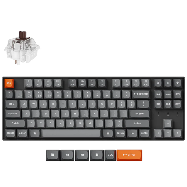 The K8 Max is a wireless mechanical keyboard with a TKL (80%) layout. It supports 2.4 GHz, Bluetooth, and wired connections. Configurable through QMK and Keychron Launcher web app, it offers endless possibilities and enhanced productivity in your work and gaming! 2.4 GHz &; Bluetooth Connection Experience peak gaming performance on the fly with the 2.4 GHz wireless connection boasting a rapid 1000 Hz polling rate. For seamless multitasking across your computer, phone, and tablet, you can effortlessly connect the K8 Max via Bluetooth 5.1 to three devices. Program with QMK &; Launcher. The open-source QMK firmware means endless possibilities for key remapping, macros, shortcuts, and more. Now you can easily customize each key with the Keychron Launcher web app. Significantly Enhanced Acoustic Foams Elevate your typing with K8 Max featuring advanced IXPE acoustic foam for enhanced comfort, coupled with resilient EPDM foam for superior key switch support, responsiveness, and durability. The steel plate provide responsive feedback and a peaceful typing sound, while added weight will enhance the stability. Suitable For All Devices Offers a Mac layout while remaining compatible with Windows. It stands out in the market by providing the same multimedia and function key functions as Apple keyboards for Mac users, but with enhanced tactile feedback. Additionally, you can configure different keymaps for both Mac and Windows devices with Keychron Launcher web app.