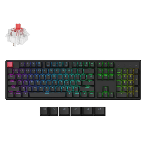 Keychron K10 QMK Wireless RGB Backlight Aluminum Frame Keychron Superswitch Red (Hot-Swappable) Keychron K10 QMK Wireless Mechanical Keyboard (Version 2) allows anyone to master any keyboard keys or macro commands through Keychron Launcher web app, it has included keycaps for both Windows and macOS, and users can hot-swap with any MX mechanical switch in a breeze. Wireless and Wired An excellent solution for multitasking. You can connect the K10 Version 2 with up to 3 devices wirelessly via its stable Broadcom Bluetooth 5.2 for seamless multitasking across your laptop, phone, and tablet. Switch among them swiftly, and it's fully compatible with both Mac and Windows. Program with QMK &; Launcher The open-source QMK firmware means endless possibilities for key remapping, macros, shortcuts, and more. Now you can easily customize each key with the Keychron Launcher web app. Anytime, Anywhere Access Keychron Launcher is a web page configurator that you can use in the office, school, lab, or government department-anywhere with internet access. Configure your keyboard online anytime without the need to download or install files. No hassle, no trouble. Compatible with All Platforms As a web-based tool, Keychron Launcher supports all operating systems.