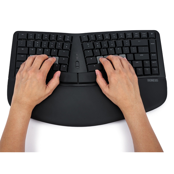 The 3 in 1 (wired, Bluetooth/Wireless) mWave incorporates similar ergonomic design as the popular MS Sculpt keyboard plus powerful ergonomic enhancements. Most important among them is the use of low-profile, full travel Mechanical key switches, instead of the short travel membrane scissor switches. Integrated Tenting elevates the thumb side of the hand to reduce forearm pronation caused by flat keyboards. Negative Tilt - install the included magnetic feet for additional wrist comfort.Tactile Home Row and Arrows: Find the home row and arrow keys without taking your eyes off the screen thanks to their unique sculpted shape. Short travel switches lead to increased finger impact over a full travel switch and they require a higher key force to activate the key action than the mechanical switch offered in the mWave. Membrane switches have a much shorter operating life, typically 10 million operations vs 50 million operations for a mechanical key switch. Fixed Split Design positions hands closer to shoulder-width in proper typing form to reduce ulnar deviation. Integrated Palm Support is velvety smooth, washable and promotes a neutral typing position reducing wrist extension. Compact TenKeyless Layout with embedded keypad results in a smaller footprint for closer mouse placement. Programmable our new Clique web-based programming editor powered by ZMK studio makes customizing your keyboard a breeze. View your layout in real time and quickly remap keys or create macros. Gateron low profile Mechanical switch KS-33-2.0 without all the unnecessary height. Giving low-force, tactile key switches. "Tactility" is a slightly elevated force around the midpoint of the stroke of the key which lets you know the switch is about to be activated. A tactile response is preferred by many ergonomists because it cues your fingers that activation is about to occur. Available Backlighting: Connect the keyboard via USB to illuminate the key legends for working in low light environments.