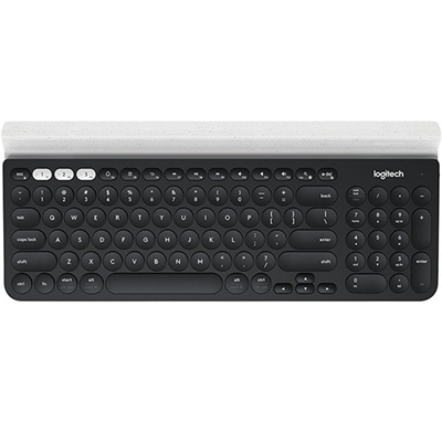REWRITE THE RULES OF WHAT A DESKTOP KEYBOARD CAN DO.The K780 Multi-Device is a fully-equipped, beautifully finished computer keyboard with numbers pad, which also works perfectly with smartphones and tablets. Enjoy comfortable silent typing, switching easily between all the devices you enter text on.* Works with PC, Mac, Chrome OS, Android and iOS. TYPE AND SWITCH BETWEEN DEVICES Type a report on your computer, then type a message on your phone or tablet at the touch of an Easy-Switch button. Compatible with Windows®, Mac, Android™ and iOS (iPhone and iPad), this universal keyboard recognizes the type of device that's connected so that all the keys are exactly where you expect them to be. FULL-SIZE, FULLY-EQUIPPED QUIET KEYBOARD Silent, smooth and familiar typing with Logitech PerfectStroke™ key system. Solid build with large, carefully crafted, concave keys, a convenient numbers pad, and all your favorite shortcut keys. Powerful wireless connection with 10m/30ft range and 128-bit AES encryption between the keyboard and the connected device. INTEGRATED RUBBER CRADLE HOLDS MOBILE DEVICES Carefully holds a variety of devices from smartphones to 12" iPad Pro at a comfortable reading angle and within reach. Keeps your desk space clean and clutter free. RELIABLE AND HASSLE-FREE Long battery life of 24 months from two pre-installed AAA batteries, with auto-sleep, on/off button and a battery status light. Comes with two options for wireless connection: Logitech Unifying™ USB receiver or Bluetooth® Smart technology.
