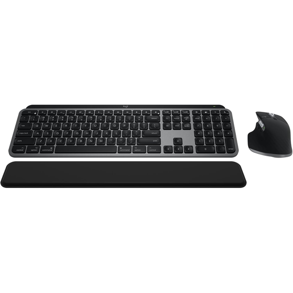 MASTERED FOR MAC You'll get more functionality with a dedicated Mac key layout, matching finishes in Space gray, smart illumination, programmable keys on your keyboard and 8k DPI track-on-any-surface sensor, and the ability to scroll 1000 lines per second with your mouse. FAST FLUID PRECISE TYPING Type with confidence and speed with spherically-dished keys shaped for your fingertips, minimizing the chances of a mistype, while increased key stability reduces noise. SCROLL 1,000 LINES PER SECOND MX Master 3S for Mac wireless mouse with MagSpeed, Logitech's fastest and most precise scroll wheel also with an 8K DPI sensor that tracks anywhere - even on glass. AUTOMATE REPETITIVE TASKS Easily create and share time-saving Smart Actions shortcuts to perform multiple actions with a single keystroke with the Logi Options+ app. SMART ILLUMINATION MADE SMARTER Backlit keys light up when your hands approach the keyboard and automatically brighten or fade to suit your environment. Control on MX Keys S backlighting duration and brightness in Logi Options+. MORE COMFORT. DEEPER FOCUS. Both wireless keyboard and mouse are engineered for hours of work. Stable keyboard with an optimum angle and mouse sculpted for your hand for better wrist posture. The included palm rest reduces pressure on the wrist for all-day comfort. NEVER COMPROMISE. CHOOSE RECYCLED There is no reason to compromise performance with sustainability. That's why our products are made with high quality recycled plastic and engineered for speed, precision, and high performance.
