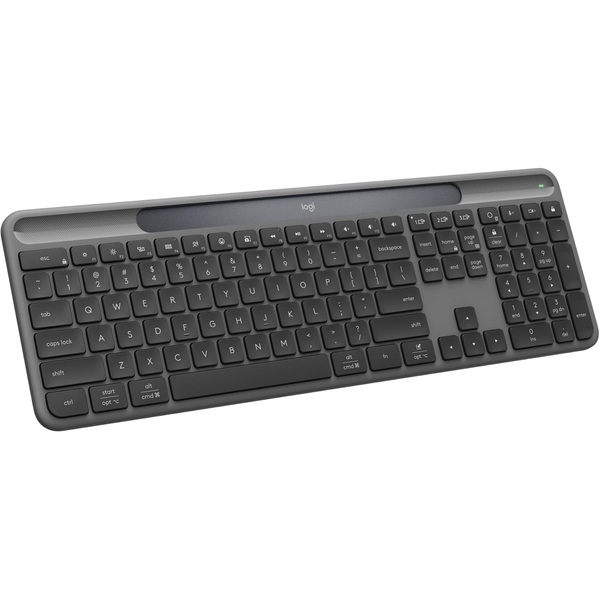 Enjoy the magic of light with a wireless keyboard powered by solar and artificial light that's always ready, rain or shine. Innovative Logi LightCharge energy management makes Signature Slim Solar+ so easy to keep charged, it's like magic. Powered by light. Any light. Sometimes we all need a ray of light to inspire us. Signature Slim Solar+is powered by solar and artificial light sources for zero-hassle wireless typing and instant productivity. Effortless. Magic. Watch your home workspace enjoy its very own glow-up. The future's bright with Logi LightCharge An innovative energy technology which combines a light-absorbent strip and a durable battery with up to 10 years lifespan, working together to turn solar and artificial light into stored power that's stored for up to four months. Better for longer Designed to last 10 million keystrokes and enjoy uninterrupted typing: Signature Slim Solar+ is made with recycled plastic and the aluminum in its inner plate is made with renewable energy rather than fossil fuels. Make clutter vanish An extension of your clean, clutter-free workspace that supports up to three devices and lets you switch easily between them with Easy Switch; a truly wireless work set up. You've got Options+ Blend work and life to do more than you ever dreamed of using your Signature Slim Solar+ wireless keyboard with the Logi Options+ App. Save time like magic Tackle your work and life tasks with Smart Actions in the Logi Options+ App. Open all your work apps or switch to social media apps while taking a quick break - automate repetitive tasks with one keystroke and own your day. Make it work for you Choose what the Keys do for you-assign shortcuts to open a browser window or launch streaming music and much more. Personalize your Keys effortlessly to suit your specific needs in the Logi Options+ App. AI right at your fingertips Need another brain to help out with your current task? Access your favourite AI tool instantly with the AI launch key. Out of the box, it opens your operating system's default AI application, but can be customized to launch any app you choose. Pair it with a Logitech multi-device mouse For effortless typing and clicking across computers. Use one mouse and keyboard across more than one computer-even different operating systems. Connect them via Bluetooth to effortlessly transfer text, images, and files between computers like magic. Quiet, comfortable, beautiful. Quiet typing and a familiar, laptop-style typing feel give you great feedback, letting you get in the zone and conquer any task for work and life. A beautiful design that makes your workspace shine brighter.