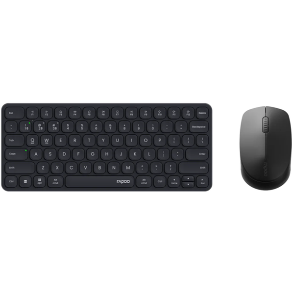 - Multi-mode wireless connection: Wireless keyboard, wireless mouse, 2.4 GHz, Bluetooth 4.0, Bluetooth 5.0- Nano USB receiver- Ultra-slim 3.9 mm design- Aluminum alloy housing- 78 scissor keys- Adjustable 2400 DPI optical mouse- Ambidextrous mouse design- 5 buttons incl. a 2D scroll wheel &; Bluetooth button- Bluetooth/2.4GHz switch button (keyboard)- On/Off button (mouse)- Up to 12 months battery life Complete interference-free wireless connectivity This stylish wireless set looks great on any desktop with its stylish, streamline design. The keyboard boasts an impressive 3.9 mm ultra-slim design and anodized aluminum housing. The Fn multimedia keys offer quick access to all important multimedia functions. While the keyboard is very compact, it also has full-size keys, which makes typing much more comfortable. The mouse features an ergonomic design suitable for left- and right- handed use as well as a 2400 DPI adjustable DPI sensor. 9010M is not only advanced in design but also in connectivity. The desktop set transmits via Rapoo's latest multi-mode wireless connection - using reliable 2.4 GHz wireless transmission, Bluetooth 4.0 or Bluetooth 5.0 - enabling you to connect simultaneously to multiple devices and switch (pair automatically) among them. Switch among multiple connected devices in one click Connect to all your devices: 9010M automatically pairs the working device. It simultaneously connects to multiple devices, and easily switches among them in a click of a button. It simplifies activities across devices and meets multi-tasking requirements Multi-mode wireless connection Interference-free wireless options: The smart switch between Bluetooth 4.0, 5.0 and 2.4 GHz ensures stable wireless transmission with up to 10 meters range and 360° coverage. You can still use your keyboard regardless of USB port shortage or the loss of receiver. Ultra-slim 3.9 mm design with aluminum alloy base Ultra-slim 3.9 mm design with aluminum alloy base Slimline and durable: The ultra-slim 3.9 mm design makes this keyboard a real eye-catcher while the housing made from anodized aluminum alloy offers stability and durability.