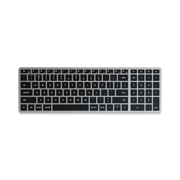 Backlit Keyboard with Numeric Key (Space Grey) Complete your modern home or office workspace with the Satechi Slim X2 Bluetooth Backlit Keyboard. Designed for Mac &; iOS devices, the X2 Keyboard features a QWERTY layout with numeric keypad, multi-device Bluetooth, and shortcut keys optimized for Apple devices - with a modern, ultra-slim design. Equipped with adjustable backlit keys and a rechargeable USB-C port, the keyboard allows you to work with ease wherever you are. - Features full QWERTY layout with numeric keypad- Connect up to four Bluetooth-enabled devices- Illuminated keys for easy typing in nearly any environment- Rechargeable USB-C port - includes charging cable