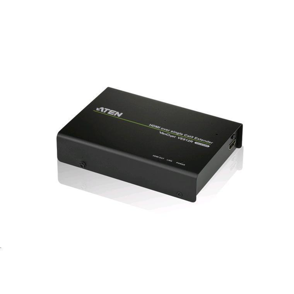 The VE812R HDMI Over Single Cat 5 Receiver supports HDBaseT technology that uses a single Cat 5e cable to extend signals up to 100 m.The VE812R not only supports HDMI (3D, Deep Color ) but also Ultra HD (4k) and is HDCP compatible. Furthermore remote EDID pass-through ensures optimum video quality for your HDMI display. The VE812 is perfect for the meeting room, home theater or any installation that needs long distance transmission and superior video quality. Implements HDBaseT extension technology using only one Cat 5e cable to connect the transmitter and receiver HDMI (3D, Deep Color, 4k); HDCP Compatible Anti-jamming - resists signal interference during high-quality video transmission using HDBaseT technology Long distance transmission - up to 100m EDID Expert - selects the optimum EDID settings for smooth power-up and highest quality display Supports up to 340MHz bandwidth for high performance video Supports Dolby True HD and DTS HD Master Audio Built-in 8KV / 15KV ESD protection (Contact voltage 8KV; Air voltage 15 KV) Package Contents 1x VE812R HDMI Over Single Cat 5 Receiver 1x Power Adapter 1x Mounting Kit 1x User Instructions