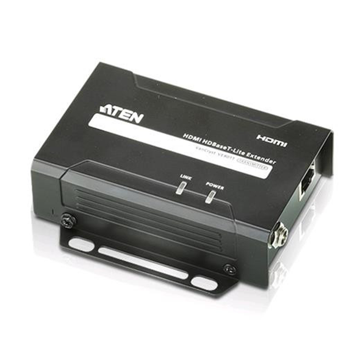 The VE801T HDMI HDBaseT-Lite Transmitter connects with HDBaseT receivers* to extend signals up to 70m from the source using one Cat 5e/6/6a cable. It supports HDMI features that include 3D, Deep Color and 4K image resolutions, plus Dolby Digital 5.1, DTS HD audio and it is HDCP compatible. The VE801T all-in-one design provides an easy method for mounting the device in any location. The side panel provides slip-resistant grooves that help prevent accidental drops when installing the unit. The grooves also enhance the ability to see the LED status lights. The VE801T is perfect for digital entertainment centers or any installation that requires superior HDMI video quality to be extended at great distances.