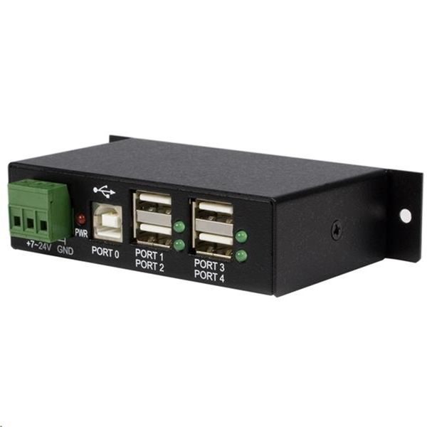 This sturdy, industrial grade USB hub can be wall mounted or installed onto a DIN rail for convenient access to its 4 female USB ports, providing a work area, server room, or industrial area with USB 2.0 connectivity. With support for Hi-Speed USB 2.0 data transfer rates of up to 480 Mbps, this 4 port USB hub is backwards compatible with USB 1.1 specifications and can be powered through the host USB bus, or self powered using a three wire terminal block connector (7-24V). The StarTech.com Advantage- An all metal chassis and surface mounting or DIN rail mounting options makes this versatile for almost any environment- Optional external terminal block DC power connector can ensure full power to all four USB ports simultaneously- Backed by a StarTech.com 2-year warranty and free lifetime technical support