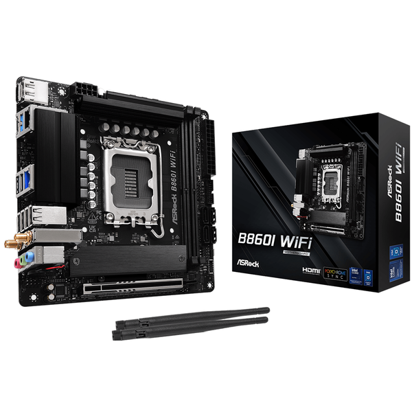 B860I WiFi Built to deliver reliable performance with versatile features, perfect for daily tasks. VRM Design 8+1+1 Power Phase DesignFeaturing sturdy components and completely smooth power delivery to the CPU. Plus, it offers unmatched overclocking capabilities and enhanced performance with the lowest temperature for advanced gamers as well.SPS (Smart Power Stage)Dr.MOS design features the latest SPS (Smart Power Stage) technology. It's optimized for monitoring current and temperature of each phase, thus delivering smoother and neater power to the CPU with enhanced performance and OC capability. Hi-Density Power Connector CPU overclocking requires higher current. ASRock Hi-Density Power Connectors are designed to withstand higher currents compared to traditional CPU and ATX power connectors, providing a more stable system and reducing the risk of fire during heavy overclocking. 8 Layer PCB The 8 Layer PCB provides stable signal traces and power shapes delivering lower temperature and higher energy efficiency for memory overclocking! Thus, it's able to support the latest memory modules with most extreme memory performance! DDR5 XMP &; EXPO Support Derived from the "built for stable and reliable" designing concept, ASRock does not compromise on any details. This motherboard is built with high quality materials, enthusiasts are able to enjoy the boost of DDR5 memory overclocking performance by enabling the pre-tested profiles. Make sure the memory modules are Intel® XMP/AMD EXPO™ capable and overclocking can be made so affordable, satisfying and absolutely no sweat at all. PCIe Gen5 Blazing M.2 The Blazing M.2 accommodates the latest PCI Express 5.0 standard to perform twice the bandwidth compared to previous generation, with a breathtaking 128Gb/s transfer speed, it is ready to unleash the full potential of future ultrafast SSDs. Aluminum Heatsink The first thing that catches the eye is the optimized Aluminum Heatsink Design. Heatsinks are crucial for efficient heat dissipation, especially during heavy workloads like gaming or productivity tasks. Motherboard that built with heatsinks can effectively manage thermal performance, hence ensure system stability and durability effortlessly. Wi-Fi 6E 802.11axe WiFi 6E technology has extended to the whole new 6GHz spectrum band, providing more WiFi capability and giving an even better and faster internet traffic. In addition to deliver higher speeds, the WiFi 6E also enhances the lower latency and supports service levels that are equivalent to 5G networks. Dragon 2.5 Gb/s LAN The intelligent 2.5Gb/s LAN platform is built for maximum networking performance for the demanding requirements of home networking, content creators, online gamers and high-quality streaming media. Boost networking performance up to 2.5X the bandwidth compared to the standard gigabit Ethernet, you'll enjoy the faster and uncompromised connectivity experience for gaming, file transfers and backups. Dual LAN Design Elevate your network's performance, security, and flexibility with our Dual LAN configuration. Experience 2.5Gbps and Gigabit speeds, while benefiting from failover protection, VLAN segmentation, and more. USB 3.2 Gen2x2 Type-C The latest USB 3.2 Gen2x2 Type-C delivers up to 20 Gbps data transfer rate which is 2x as fast as previous generation, providing a blazing fast data transfer interface with reversible USB Type-C design that fits the connector either way. Dual Graphics Outputs Complete with two types of most used connectors! Packed with a HDMI + DisplayPort combo, you have more graphics output options now. Audio That Matters Whether you are using headphones, a headset, external or internal speakers, via USB, Wi-Fi, analog output or even HDMI, Nahimic Audio offers you the most engaging listening experience, vibrant and rich with details. Enhance Communication Quality The Powerful algorithms to ensure the best noise-free conversation, giving a constant vocal level no matter the distance from your mic. The Nahimic audio engine dynamically clear the sound and remove interference noise and lower the voice variation. Result is a better comprehension and less fatigue. - Static Noise Suppression- Echo Cancellation- Lateral Sound Cancellation- Voice Stabilizer Ultimate Gaming Experience - Sound TrackerThe Sound Tracker is a visual indicator that points out the directions from which predominant sounds are coming. Each sound is properly positioned in 360° on a radar for a full immersion during the game. - Works on any devices!Enjoy the vibrant and high-quality Surround Sound on all your favorite audio devices. Nahimic is compatible with all of your favorite audio tools and ensures the best sound with any of them. Nahimic measure and improve to optimize our technology and offer you the best experience. POLYCHROME RGB This motherboard features onboard RGB headers and addressable RGB headers that allow motherboard to be connected to compatible LED devices such as strip, CPU fans, coolers, chassis and so on. Users may also synchronize RGB LED devices across the Polychrome RGB Sync-certified accessories to create their own unique lighting effects. SignalRGB SignalRGB unifies your RGB devices, offering seamless customization, game-reactive effects, macro automation, and system monitoring. The official partnership empowers ASRock motherboards with advanced lighting control, enhances compatibility with a diverse range of RGB devices, and provides greater customization flexibility.