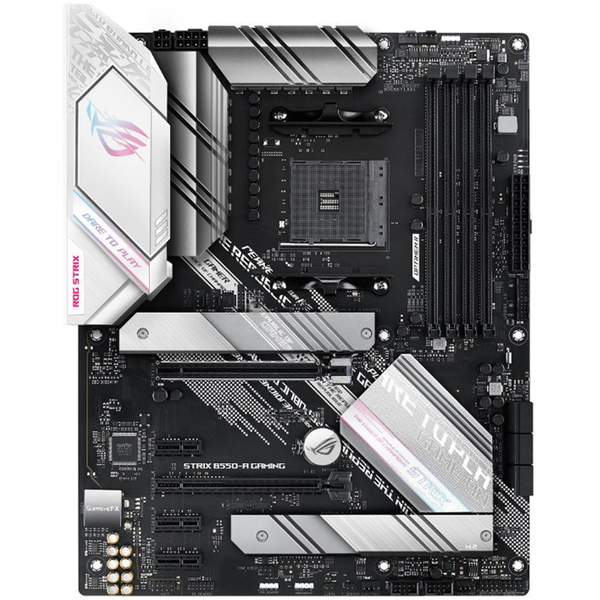 Designed for those seeking to get the most out of their build, ROG Strix B550 Gaming series motherboards offer a feature-set usually found in the higher-end ROG Strix X570 Gaming series, including the latest PCIe® 4.0 connectivity. Offering robust power delivery and effective cooling, ROG Strix B550-A Gaming is well-equipped to handle 3rd Gen AMD Ryzen™ CPUs. As an added bonus, outstanding performance is complemented by a stunning silver-and-white finish and cyberpunk-inspired aesthetics that present a standout look. Built for Performance Gaming Advance Your Gaming Immersion ROG Strix B550-A Gaming is PCIe® 4.0-ready and provides the latest connectivity options for supersmooth networking and blisteringly fast file transfers. Audio enhancements give you a massive advantage, allowing you to pick up on the subtlest of cues for a completely immersive gaming experience. PCIe 4.0-Ready ROG Strix B550-A Gaming features two M.2 slots, one of which supports the latest PCIe 4.0 standard to provide maximum storage flexibility and the fastest data speeds available via the 3rd Gen AMD Ryzen platform. Both M.2 slots support up to the type 22110 socket and NVM Express® RAID for a performance boost. Intel 2.5 Gb Ethernet Onboard 2.5 Gb Ethernet gives your wired connection a boost, with speeds that are 2.5 times faster than standard Ethernet connections for speedy file transfers, lag-free gaming, and high-res video streaming. SupremeFX Built-in ROG SupremeFX audio technology ensures pristine audio for ROG Strix B550-A Gaming. Along with ensuring a flat frequency response for a neutral, detailed sound signature, it offers two front-panel outputs driven by op amps that deliver high-quality audio to gaming headsets. All-round Performance ROG Strix B550-A Gaming provides robust power delivery to fuel Ryzen's cores, comprehensive cooling, and support for faster memory - so it has everything you need to load up your build with high-performance components for playing in the big leagues. Cooler by Design ROG Strix B550 series features the most comprehensive cooling options ever, configurable via Fan Xpert 4 or the UEFI BIOS. ASUS OptiMem II To provide AMD's latest CPUs unfettered access to memory bandwidth, motherboard trace routing has been reimagined with the ROG Strix B550-A Gaming. Integrated OptiMem II technology carefully maps memory signal pathways across PCB layers to reduce vias, and it also adds shielding zones that significantly reduce crosstalk. To further enhance overclocking headroom for fully stacked memory configurations, a highly customized Daisy Chain layout delivers time-aligned signaling. Play Your Own Style The cyberpunk-inspired aesthetics of ROG Strix B550-A Gaming are accentuated by the bold slashes and cybertext. By pairing your rig with other products from the diverse ROG ecosystem, you can create a fully customized gaming setup that reflects your personal style. Pre-mounted I/O shield Patented I/O shield is finished in sleek matte black and comes pre-mounted to make it easy to install on the motherboard. CERTIFIED COMPATIBILITY ROG Strix motherboards undergo an extensive certification program to ensure the very best compatibility with the widest range of components and devices. For a smooth build process, refer to our list of guaranteed-compatible components. To help with memory upgrades, the list also includes a dedicated Qualified Vendor list (QVL). UNDENIABLY ROG STRIX Finished in stunning white and silver, and featuring the redesigned ROG logo and recessed cybertext markings on its I/O shroud, ROG Strix B550-A Gaming is an eye-catcher. These new design touches move ROG Strix boldly towards the future, while clearly reflecting its gaming roots. UEFI BIOS The renowned ROG UEFI (BIOS) provides everything you need to configure, tweak, and tune your rig. It offers intelligently simplified options for newcomers to PC DIY, as well as comprehensive features for seasoned veterans. When you're ready for a deeper dive into the configuration of your system, delve into the UEFI's Advanced mode and take complete control. Each section is intuitively organized, and a built-in search feature makes it easy to find the options you need. Advanced functions are coded with the intelligence to adapt to your settings, and when you're ready to take charge, parameters have the granularity to dial in performance just the way you want.