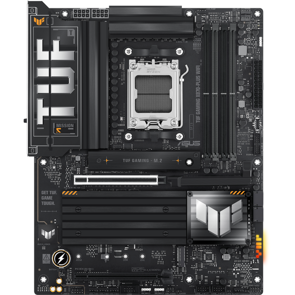 TUF GAMING X870-PLUS WIFI ASUS TUF GAMING X870-PLUS WIFI takes all the essential elements of the latest AMD Ryzen™ processors and combines them with game-ready features and proven durability. Engineered with military-grade components, an upgraded power solution and a comprehensive cooling system, this motherboard goes beyond expectations with rock-solid and stable performance for marathon gaming. TUF GAMING motherboards also undergo rigorous endurance testing to ensure that they can handle conditions where others may fail. This platform delivers the power and connectivity that advanced AI PC applications demand.