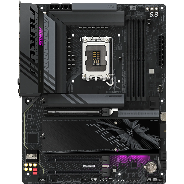 Z890 AORUS ELITE WIFI7 - Supports Intel® Core™ Ultra processors (Series 2)- Digital twin 16+1+2 phases VRM solution- D5 Bionic Corsa for Infinite Memory Performance- AORUS AI SNATCH : Auto-Overclocking Software by AI models- AI Perfdrive : Provides optimal and customized BIOS preset profile for users- Premium Compatibility : 4*DDR5 with XMP Memory Module Support- WIFI EZ-Plug : Quick and easy design for Wi-Fi antenna installation- EZ-Latch Plus : PCIe and M.2 slots with Quick Release &; Screwless Design- EZ-Latch Click : M.2 heatsinks with screwless design- Sensor Panel Link : Onboard video port for hassle-free in-chassis panel setup- Friendly UI : Multi-Theme, AIO Fan Control, and Q-Flash Auto Scan in BIOS and SW- New Power Monitor in