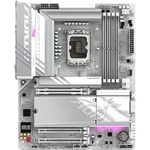 Z890 AORUS ELITE WIFI7 ICE - Supports Intel® Core™ Ultra processors (Series 2)- Digital twin 16+1+2 phases VRM solution- D5 Bionic Corsa for Infinite Memory Performance- AORUS AI SNATCH : Auto-Overclocking Software by AI models- AI Perfdrive : Provides optimal and customized BIOS preset profile for users- Premium Compatibility : 4*DDR5 with XMP Memory Module Support- WIFI EZ-Plug : Quick and easy design for Wi-Fi antenna installation- EZ-Latch Plus : PCIe and M.2 slots with Quick Release &; Screwless Design- EZ-Latch Click : M.2 heatsinks with screwless design- Sensor Panel Link : Onboard video port for hassle-free in-chassis panel setup- Friendly UI : Multi-Theme, AIO Fan Control, and Q-Flash Auto Scan in BIOS and SW- New Power Monitor in HWinfo for real-time monitoring on CPU power phases- Ultra-Fast Storage : 4*M.2 slots, including 1* PCIe 5.0 x4- Efficient Thermal : VRM Thermal Armor Advanced &; M.2 Thermal Guard L- Fast Networking : 2.5GbE LAN &; Wi-Fi 7 with directional Ultra-high gain antenna- Extended Connectivity : THUNDERBOLT™ 4 Type-C with DP-Alt, DisplayPort- High-Res Audio : ALC1220 &; WIMA Audiophile Grade Capacitors- Ultra Durable PCIe Armor : The metal back plate of PCIe x16 slot for enhanced durability- PCIe UD Slot X : PCIe 5.0 x16 slot with 10X strength for graphics card Performance