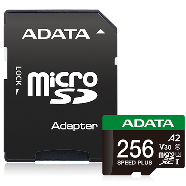- Read/write speeds up to 180/160MB per second- Support U3, V30 video specifications- Complies with A2 standards, able to carry out a large number of commands- Large storage capacity- Efficient, durable, and reliable data protection SPEED PLUS Storage Evolved SPEED PLUS microSDXC memory cards can be used in a variety of devices such as drones, action cameras, 360-degree photography, head-mounted devices, etc. Maximum transfer speed can reach 180MB per second*, with excellent read/write performance and capacity. This card is the perfect assistant for adventurers who want to capture every moment. Load Seamlessly with A2 Standard As mobile device performance continues to increase by leaps and bounds, the SD Association has released a new A2 standard (Application Performance Class 2), allowing SPEED PLUS microSDXC memory cards to provide a minimum random read speed of 4,000 IOPS and a minimum random write speed of 2,000 IOPS. This standard also optimizes the access and loading time of system applications, handles multiple simultaneous commands, and saves power. Ultra-clear Dynamic Recording with No Frame Drops The SPEED PLUS microSDXC memory card adopts UHS-I U3 high-speed specifications and V30 recording speed levels, supports high-definition motion image processing such as Full HD, 3D surround view, and 4K Ultra HD, and can maintain a minimum write speed of 10MB per second in a stable manner, faithfully recording every wonderful moment and making professionals more professional. Durable and Reliable Data Protection The SPEED PLUS microSDXC memory card features an SSD-level LDPC (Low-density parity-check code) automatic error correction function and has passed water resistance, shock resistance, X-ray resistance, anti-static, and high temperature and extreme cold resistance tests to offer the best protection for important data.